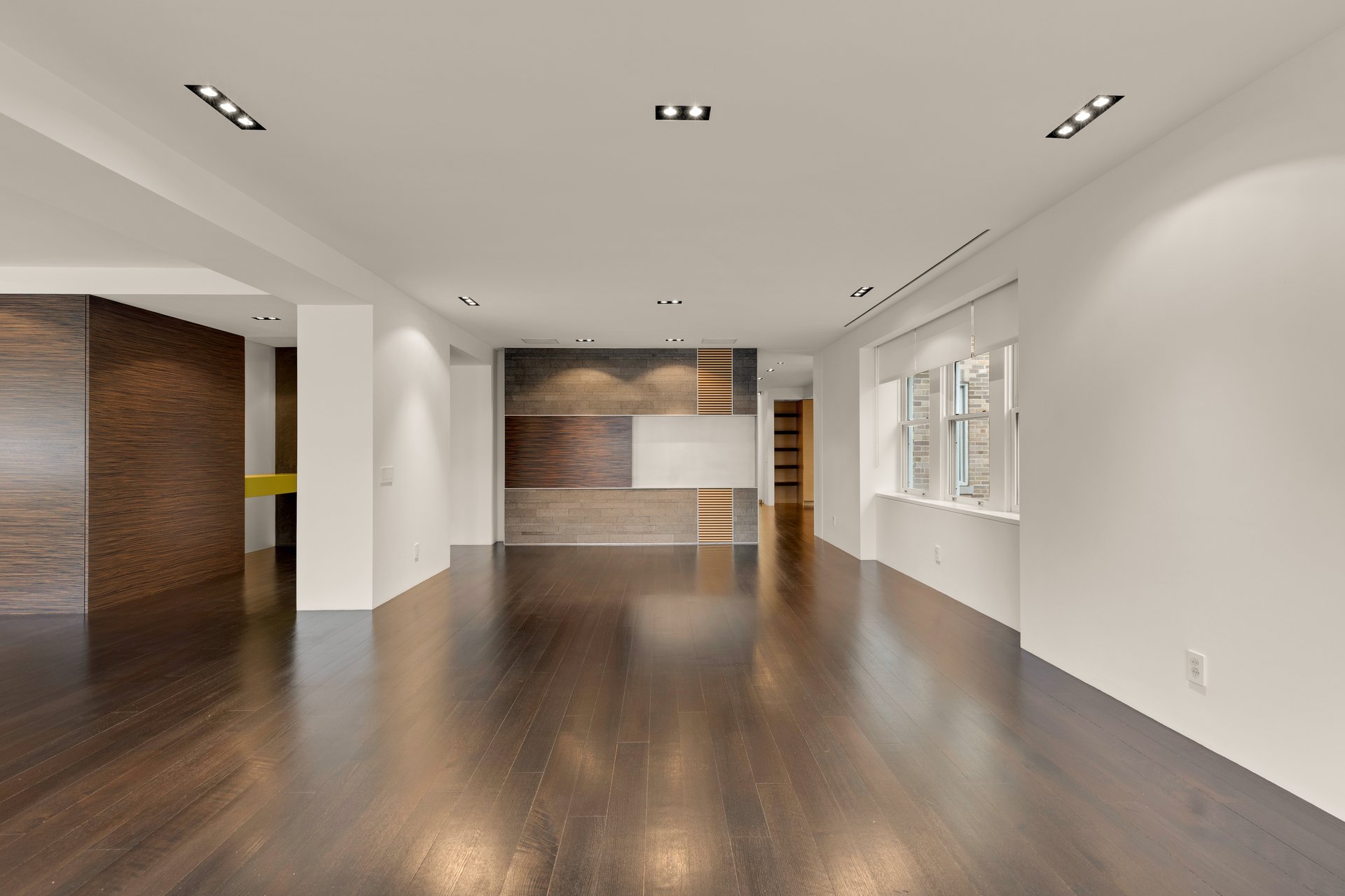 Most striking is the contrast between this interior clarity and the ornate character of the cooperative itself. You step from a marble lobby rooted in early twentieth-century craftsmanship into a residence shaped by modernism’s most elegant principles. The juxtaposition enhances both: the building offers permanence and presence, while the apartment offers openness, lightness, and a calm contemporary rhythm.