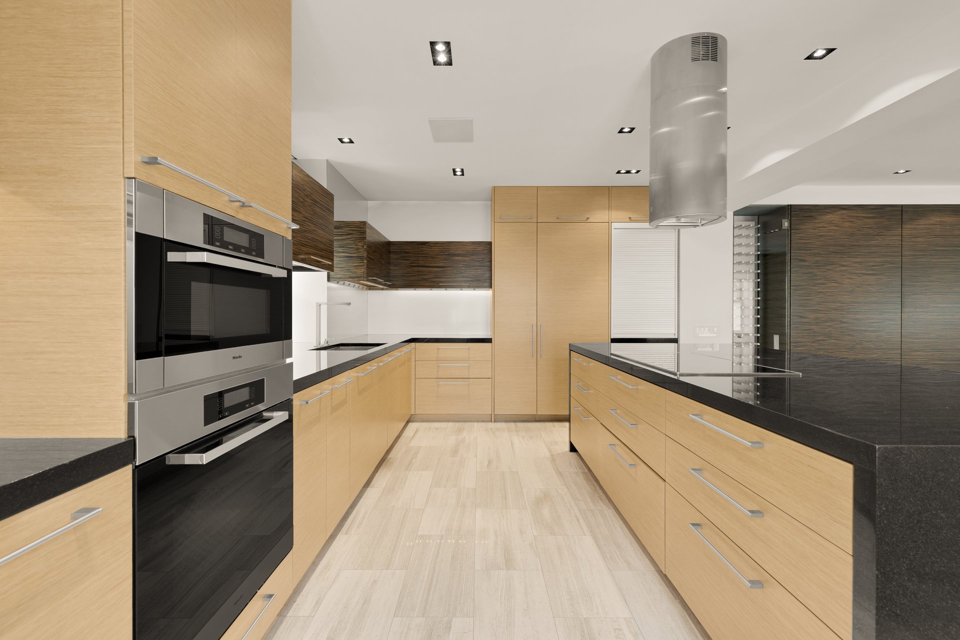 Materiality plays the starring role. Stained white oak, zebrawood cabinetry, aluminum accents, and clear glass partitions establish a refined yet natural palette. The materials do not compete; they connect. Under Gurney’s architectural philosophy, richness emerges from restraint, expressed in the warmth of wood, the disciplined lines of millwork, and transitions that feel almost invisible. Even the smallest details follow a minimal vocabulary that reinforces cohesion throughout the home