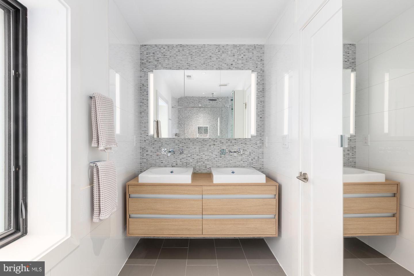 A totally renovated, beautiful home hidden on a quiet, one-way, sidewalk-lined street, overlooking Foundry Branch Park, immediately adjacent to Georgetown. The current owners recently completed a top-to-bottom modern renovation; adding more space and introducing glass walls at the rear to invite Eastern light and capture the remarkable exposures of the rich parkland. The entire home was reimagined, starting by making the primary suite a treetop sanctuary over the park. Every room discovered new light with larger windows, modern finishes, and a thoughtful reconfiguration of the spaces. The main level shines with a brilliant white kitchen and breakfast nook, then opens to the entire floor, through a generous dining room with fireplace, to the open family room that's now connected to the outdoors.. Downstairs a kitchenette was added to support a new playroom, office, bedroom, and full bathroom. The lower and main levels walk out to the terraced backyard that is both wide and deep, offering garden spaces, play areas, and direct access to the park. They even widened the driveway which can comfortably park three total cars with one inside the garage. This is the ultimate combination of finished detail, amenities, and location; move-in ready perfection.