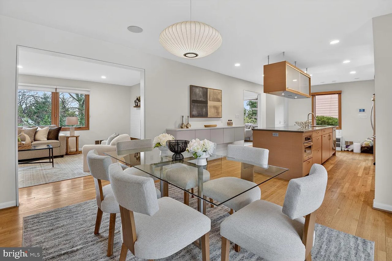 Beautifully renovated Mid-Century Modern home in Kenwood Park, offering an exceptional blend of warmth, natural light, and modern convenience. Thoughtful updates are found throughout, including Leicht German cabinetry and Caesarstone countertops in the kitchen and bathrooms. The kitchen is both stylish and functional, featuring excellent storage, upgraded appliances, and direct access to the two-car carport. A striking two-sided wood-burning fireplace anchors the main living spaces, adding warmth and character to both the living room and the vaulted-ceiling den. The den opens to a spacious deck with stairs leading to a flagstone patio and fire pit—ideal for entertaining or relaxing outdoors—and may also serve as an elegant formal dining room. The main level includes four bedrooms and two full bathrooms, providing comfortable and convenient living. The walk-out lower level offers remarkable flexibility with a large recreation room centered around a second wood-burning fireplace and sliding doors to the patio. A versatile kitchenette/craft room—complete with an additional refrigerator, freezer, and full-size washer and dryer—creates space for hobbies, entertaining, or multigenerational living. This level also features a second den, a third full bathroom, and a fifth bedroom, perfect for guests, a private office, or a home gym. Timeless Mid-Century design, inviting indoor-outdoor spaces, and modern functionality come together beautifully in this exceptional home.
