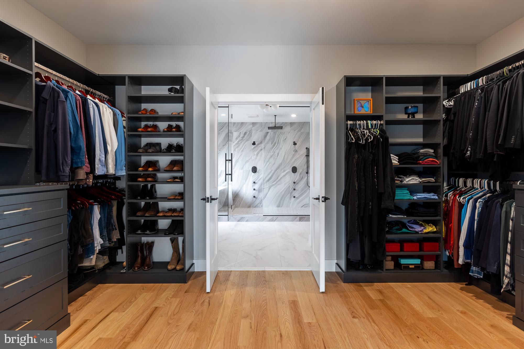 The lower level features a full bar, wine storage, a gym, a theater room, and a guest suite. The immaculate three-car garage opens directly into organized built-in storage and a dedicated dog wash. An elevator shaft is already framed for future installation.